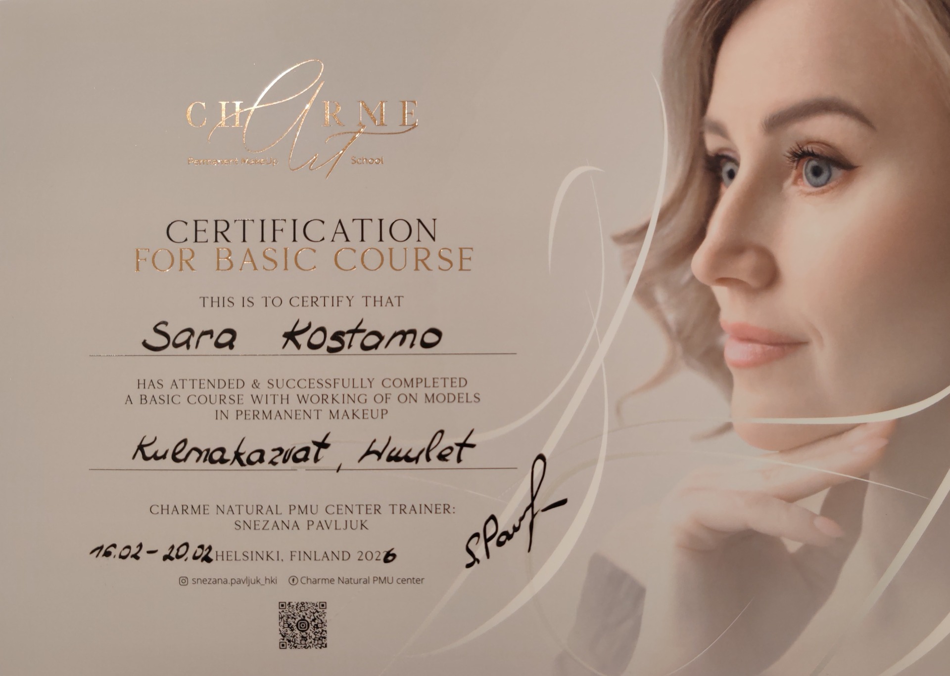 Koulutus: Snezana Pavljuk, mestari tason artisti ja kouluttaja.